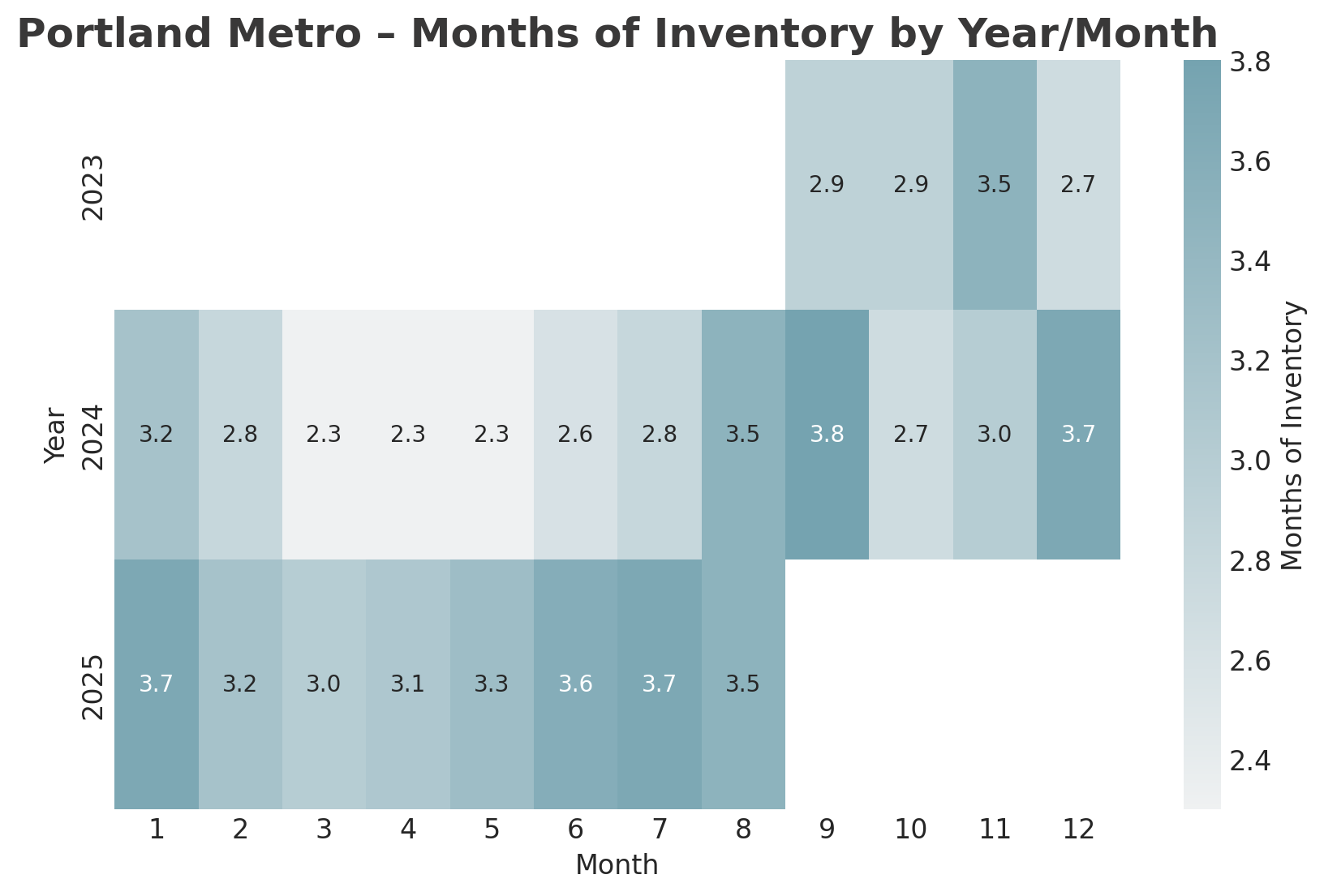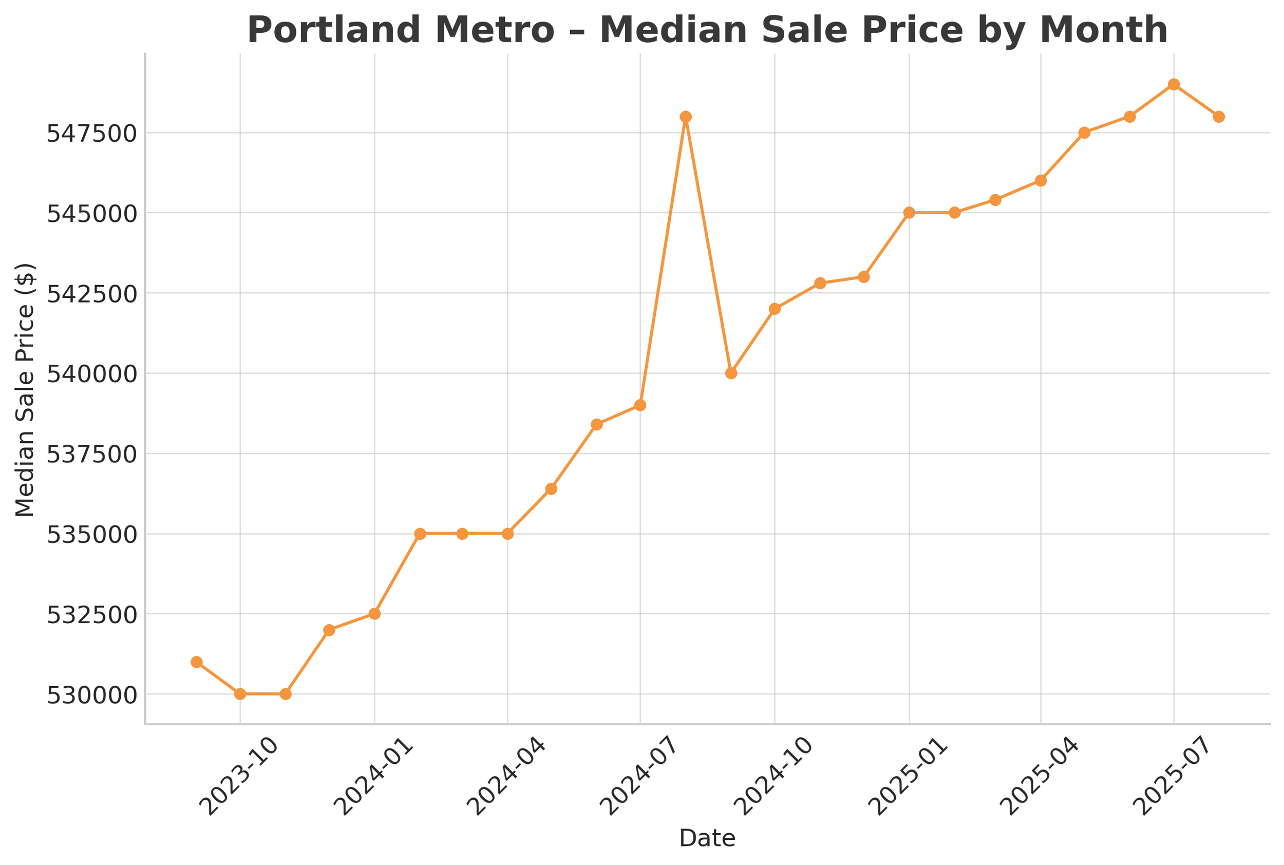 When there are fewer homes available, buyers compete harder. Over the past 24 months, inventory has hovered in the 2.3–3.8 months range. Anything under four months is considered a seller’s market, and Portland has stayed firmly there. That means even in slower months, sellers often still have leverage—just fewer showings and a little more patience required.